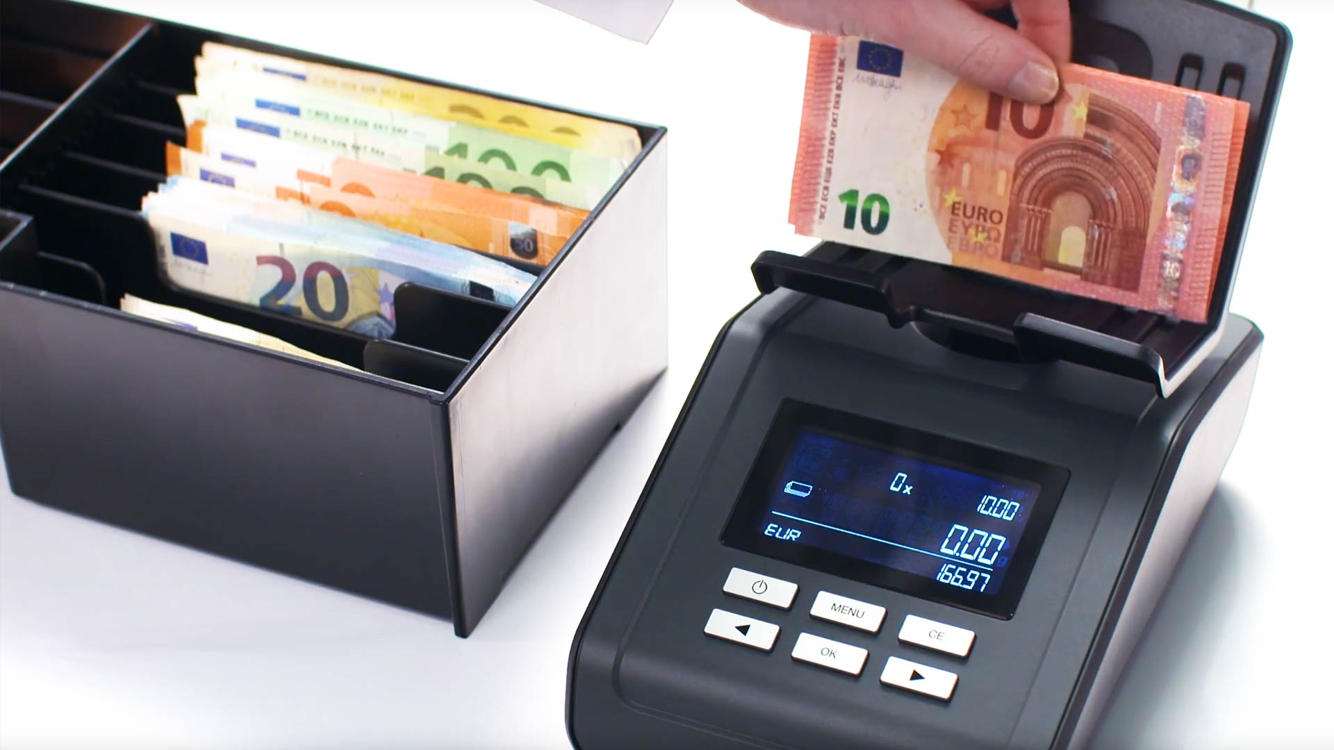 L’écran vous indique la validité du billet, mais aussi sa valeur. L’appareil dispose également d’une fonction d’addition pratique. La valeur totale de tous les billets scannés est directement affichée, ce qui vous permet de savoir si vous avez reçu la somme exacte.